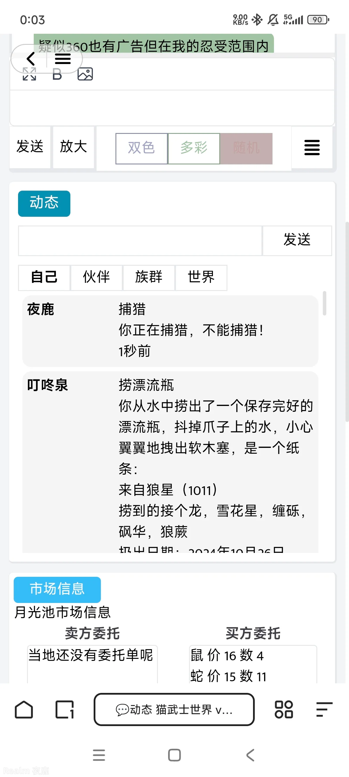 只看自己消息的界面,正常签到-输入捕猎-跳出叮咚泉的消息-再次输入捕猎说我正在捕猎